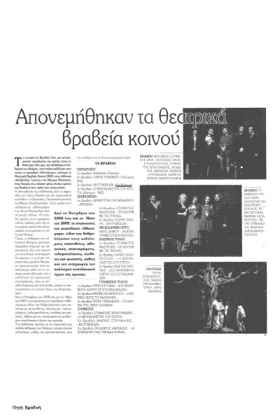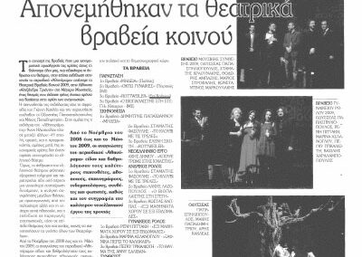 Η παράσταση έχει αποσπάσει τρία Βραβεία κοινού του περιοδικού «Αθηνόραμα» για το 2009: Βραβείο καλύτερης παράστασης, Βραβείο Σκηνοθεσίας (Ελένη Σκότη), Βραβείο Μουσικής (Μάριος Στρόφαλης).